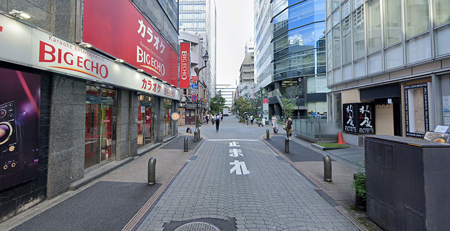 ③ビックエコーの十字路を左に曲がります